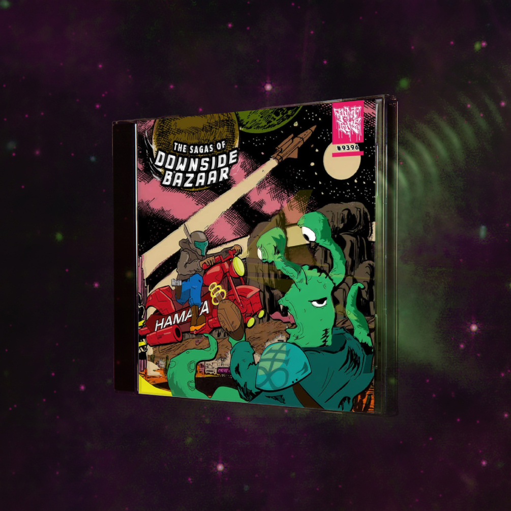 The Sagas of Downside Bazaar on CD in a 90s style ribbed jewel case. Includes download code in case with limited artwork card (1/100)